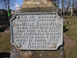 Viekšnių senosiose kapinėse ant jo antkapinio kryžiaus yra toks užrašas: „Cze ełs klebons tabołskas bazniczes Benediktas Koncewicze, giemes 1836 m. 30 spale, mere 1883 m. 8 d. kowa. Bowa gimema Weiksznu parapiyes”.