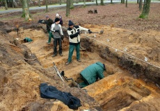 2015 m. lapkričio pab. VšĮ „Kultūros vertybių globos tarnyba" archeologai (vad. Diana Antropikaitė) parke atliko žvalgomuosius kasinėjimus, kurių metu aptikta 1944 m. žuvusių trisdešimties vokiečių kareivių palaikų. Lietuvos vyriausybė prašymą ekshumuoti vokiečių karių palaikus, kurie buvo palaidoti Mažeikių senamiesčio pareke, gavo iš Vokietijos visuomeninės organizacijos, kuri yra įgaliota rūpintis vokiečių karių kapų tvarkymu ir palaikų perlaidojimu. Tyrimų metu rasti palaikai buvo prastos būklės. Nors kūnai ir buvo laidojami karstuose pakankamai tvarkingai, dideliais tarpais, tačiau dėl tokios situacijos galbūt kalta specifinė dirva. Žetonai ir kiti rasti personaliniai daiktai buvo surenkami atskirai. Tarp radinių įdomiausias - karininko pypkė, kareivio batai, mažai rasta aprangos fragmentų, daugiau aptikta sagų. Šios vokiečių karių kapinės buvo suformuotos per du mėnesius - tiesiai iš fronto vežė nukautus karius ir čia laidojo. Vietiniams buvo mokoma, kad sukaltų kryželius, ant kurių įrengtos lentelės su vardais ir pavardėmis, viskas buvo daroma skubiai. Po to vokiečiai pasitraukė į Latviją. Rasti karių palaikai bus perlaidojami Kaune arba Klaipėdoje, kur yra vokiečių karių kapinės - visiems jiems bus pagaminti atskiri kryžiukai su pavardėmis [4].