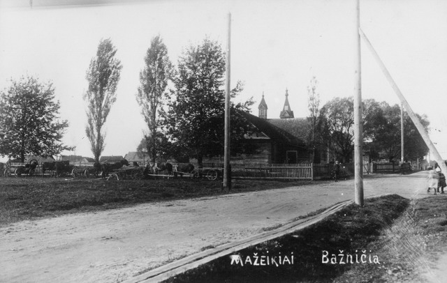 Pirmoji Mažeikių bažnyčia, past. 1905 m. Fotografuota apie 1937 m. Nuotraukos autorius K. Bužokas. Gauta fotokopija iš asmeninio archyvo.