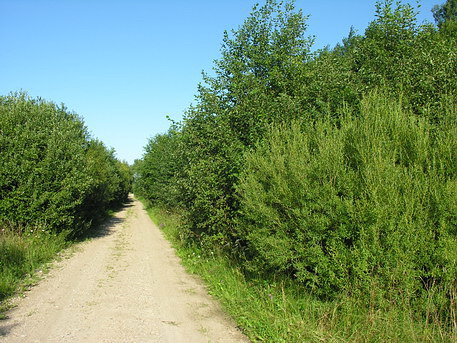 Karalinės miškas, kelias miško pakraščiu iš Tučių į Birbiliškes