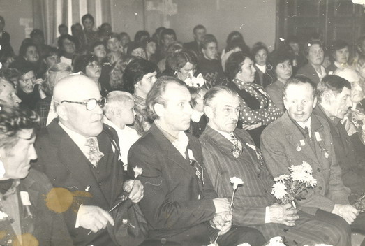 Šerkšnėnų k. Antrojo pasaulinio karo veteranai: iš kairės į dešinę J. Videika, K. Laima, J. Vaizgėla ir S. Andriekus, 1984 m.