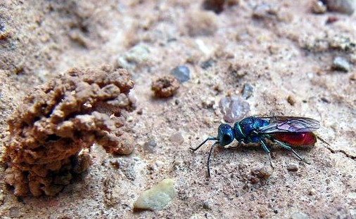Auksavapsvė Chrysa mediata. Jos šeimininkas - Odynerus, kurio urvelis šalia Det. Eduardas Budrys.