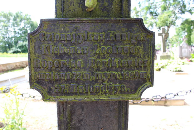 Kun. Ruperto Bortkevičiaus antkapinio paminklo įrašas Leckavos kapinėse.
