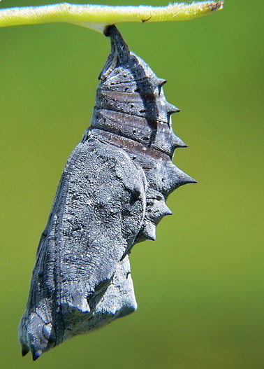 Raudonjuostė pleštekė (Nymphalis xanthomelas), lėliukė